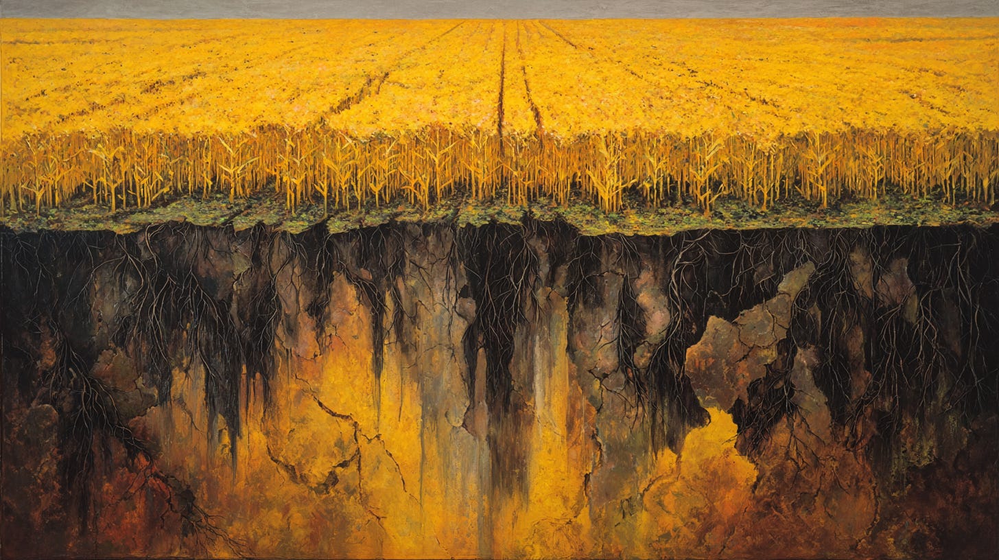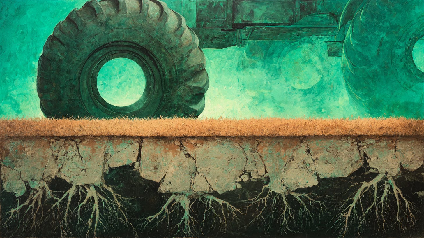 That farmer in Illinois, and the tens of thousands like him, will fill the tank again tomorrow morning. Their sons and daughters will probably fill it after them. Each spring the system grinds forward without serious transition investment, the soil gets a little more depleted, the weeds get a little more resistant, and the cost of eventually changing course gets larger.